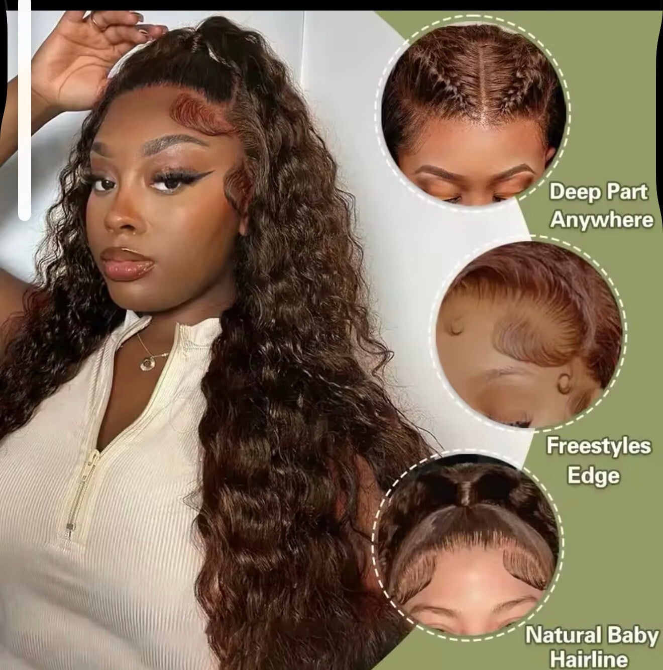 Premium chocolate brown HD lace front wig made with 100% human hair for a natural and flawless look. This wig features 220% density for full volume and soft curls that are easy to style. Designed for comfort, durability, and a beautiful natural hairline